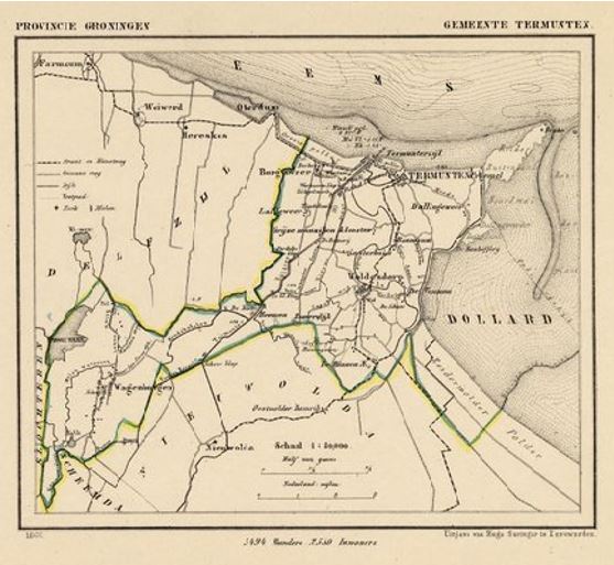 - Martje Jans Huisman, geb. 27-11-1813, overl. Bierum 09-03-1879, tr. (1) Termunten met Eggo Derks Kleve, tr. (2), oud 27 jaar, ’t Zandt met Willem Danïels van Oosterom