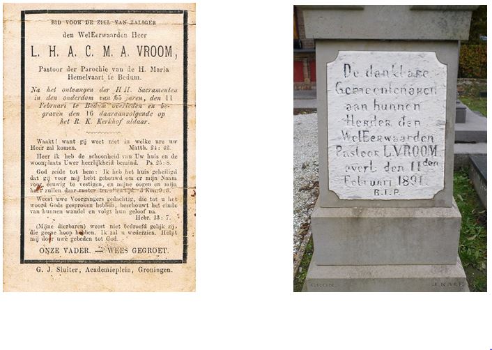 Laurens Hindrik Albert Carel Vroom, geb. Nieuwe Pekela 25-11-1825, overl. Bedum 11-02-1891, oud 65 jaar, begr. Bedum 16-02-1891