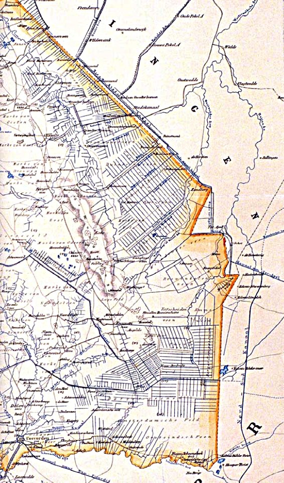 Ten zuiden hiervan lag het veengebied van Weerdinge dat niet behoorde tot de marken die in 1817 het Convenant met de stad Groningen hadden gesloten over de aansluiting van hun veengebieden op het Stadskanaal.